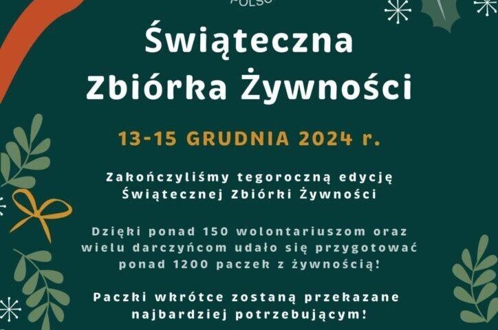 Pragniemy serdecznie podziękować wszystkim, którzy zaangażowali się w organizowaną przez nas Zbiórkę. Dzięki Waszej hojności udało się zebrać imponującą ilość produktów, które trafią do potrzebujących rodzin, domów opieki oraz osób znajdujących się w trudnej sytuacji życiowej. Dziękujemy również wszystkim wolontariuszom i partnerom, którzy pomogli w organizacji i przeprowadzeniu zbiórki, a w szczególności: